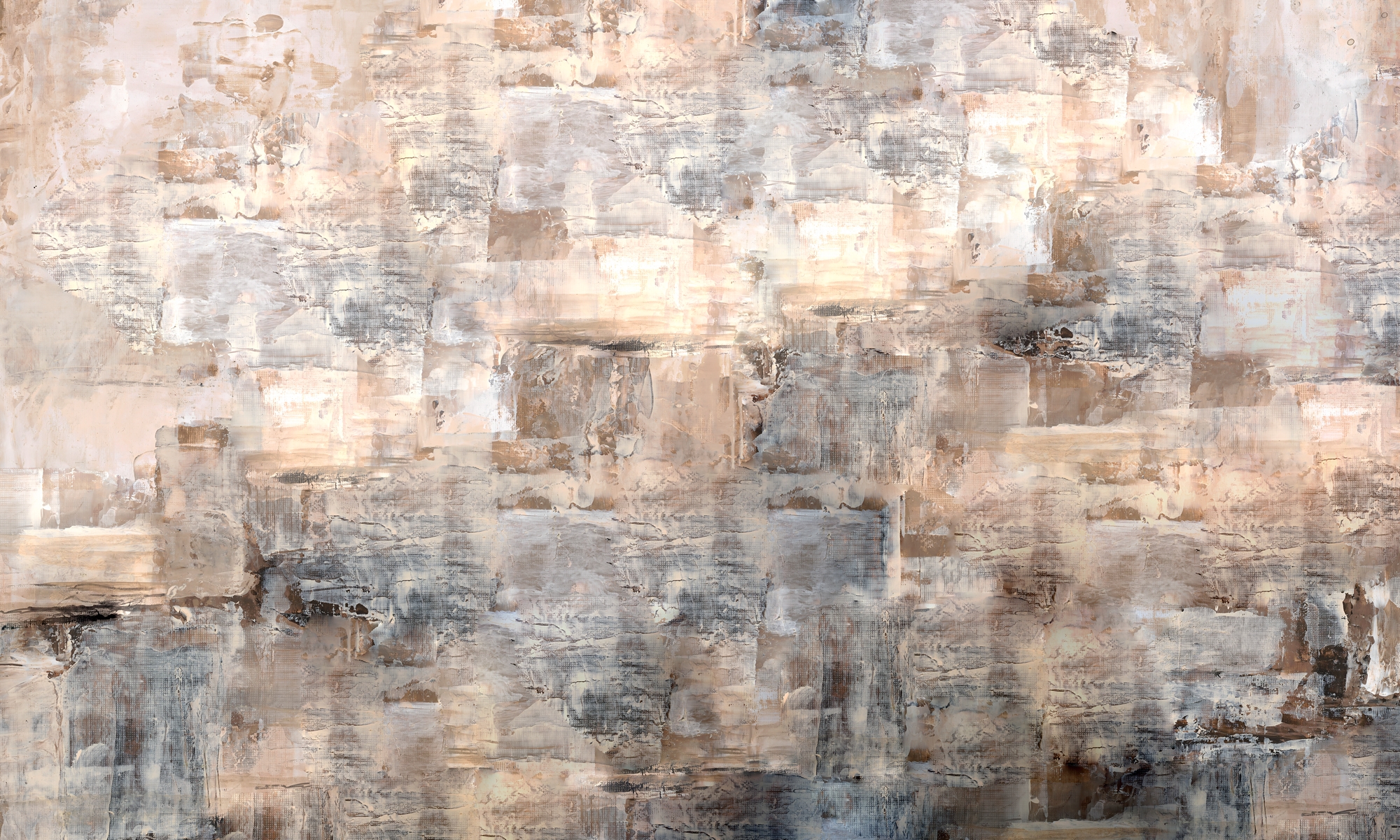 Artystyczna kompozycja o ciepłej palecie beży i szarości. Przypomina strukturę starych murów – subtelna, a zarazem pełna głębi i naturalnego rytmu.