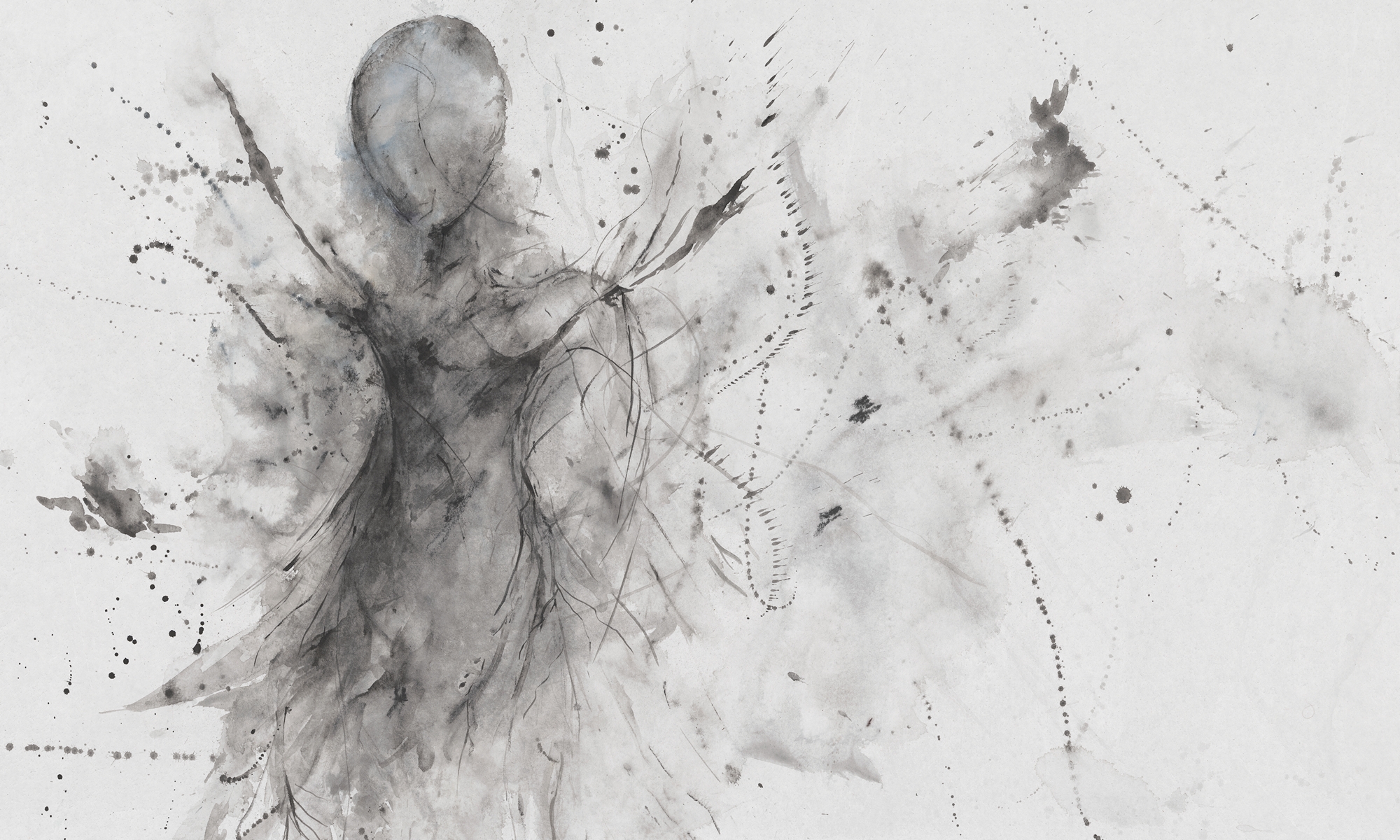 Delikatny szkic w tonacji szarości i czerni. Artystyczna abstrakcja, która tworzy wrażenie ruchu i ekspresji w minimalistycznej formie.