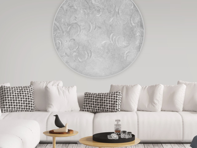 Istnieje również możliwość zmiany podkładu na inny, dostępny w ofercie Rauv. Wówczas koło przygotowywane jest na materiale tapetowym i montowane przy użyciu kleju do tapet.