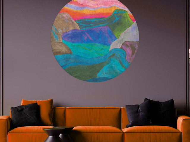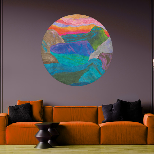 Standardowe koła dostępne są w trzech rozmiarach: 80 cm, 100 cm oraz 130 cm średnicy. Drukujemy je na samoprzylepnym podkładzie o strukturze płótna, co sprawia, że montaż jest szybki i prosty – wystarczy odkleić folię i przykleić dekorację na ścianę.