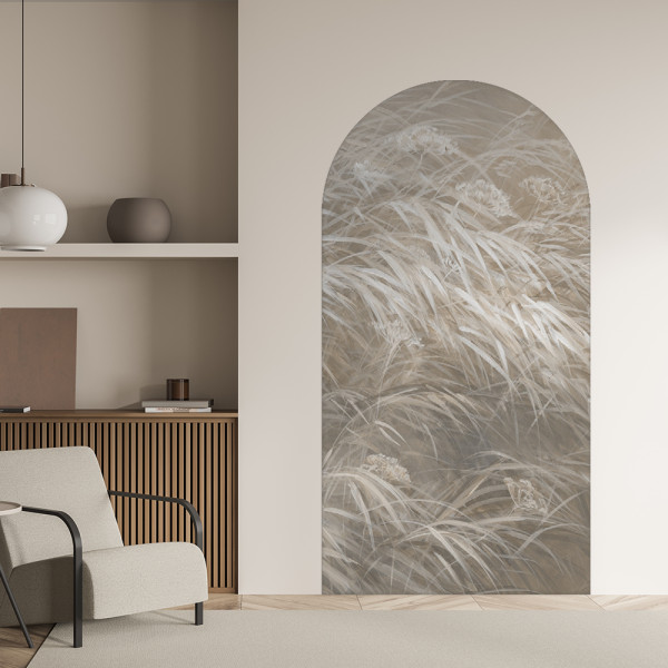 Łuki dostępne są w jednym standardowym rozmiarze: 130 × 250 cm. Drukujemy je na samoprzylepnym podkładzie o strukturze płótna, dzięki czemu montaż jest szybki i prosty – wystarczy odkleić folię zabezpieczającą i przykleić dekorację bezpośrednio na ścianę.