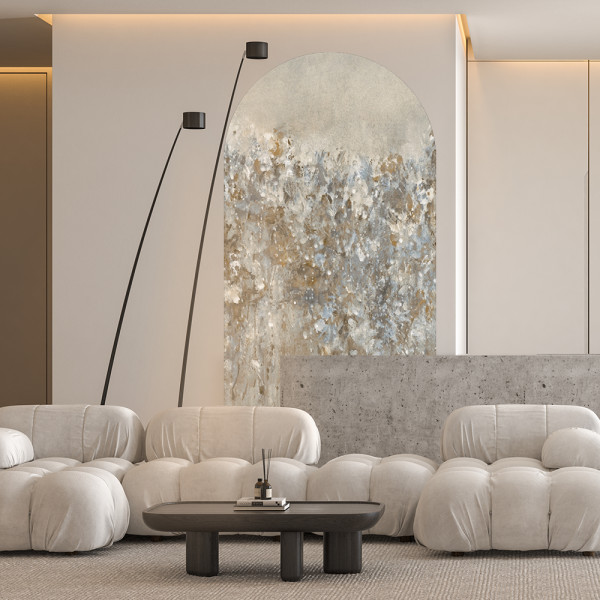 Łuki dostępne są w jednym standardowym rozmiarze: 130 × 250 cm. Drukujemy je na samoprzylepnym podkładzie o strukturze płótna, dzięki czemu montaż jest szybki i prosty – wystarczy odkleić folię zabezpieczającą i przykleić dekorację bezpośrednio na ścianę.