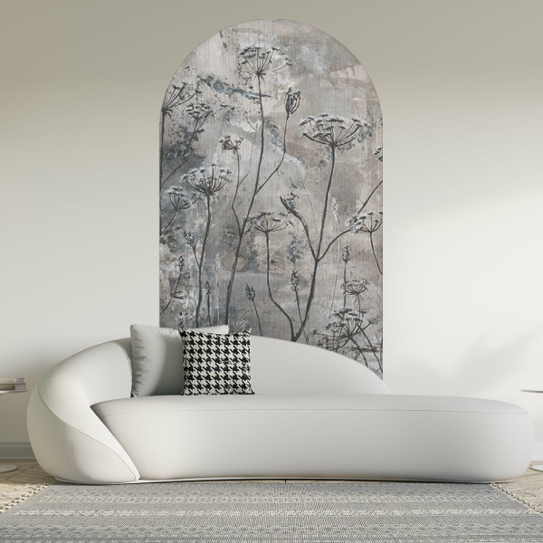 Łuki dostępne są w jednym standardowym rozmiarze: 130 × 250 cm. Drukujemy je na samoprzylepnym podkładzie o strukturze płótna, dzięki czemu montaż jest szybki i prosty – wystarczy odkleić folię zabezpieczającą i przykleić dekorację bezpośrednio na ścianę.