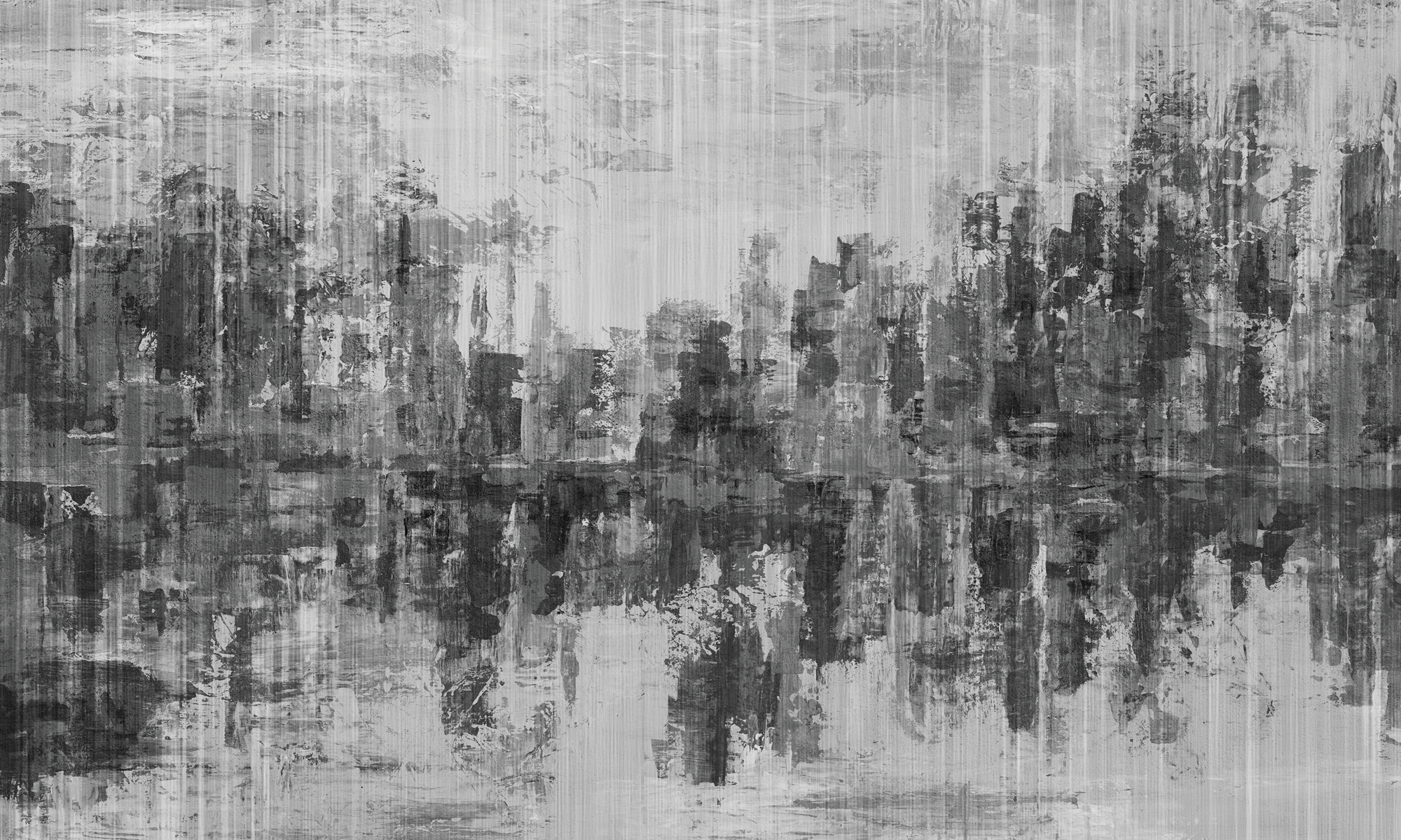 Wyrazista, malarska faktura przypominająca industrialną panoramę. Tapeta o silnym, artystycznym charakterze z nutą ekspresji.