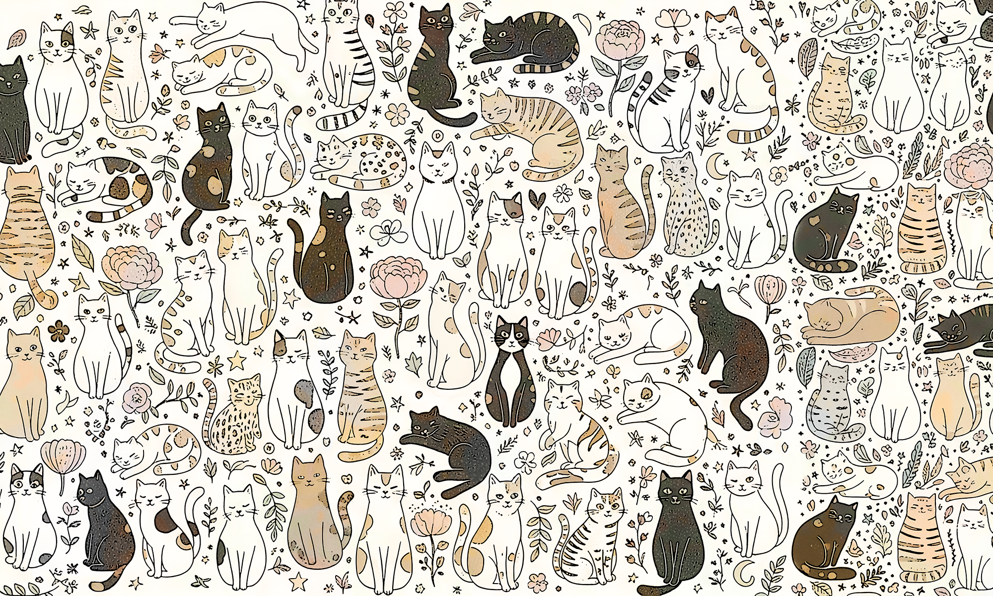Happy Cats to tapeta dziecięca z ilustracyjnym motywem kotów, zaprojektowana jako spokojne i estetyczne tło do pokoju dziecka. Subtelny, powtarzalny wzór wprowadza ciepłą atmosferę i nie przytłacza wnętrza.
