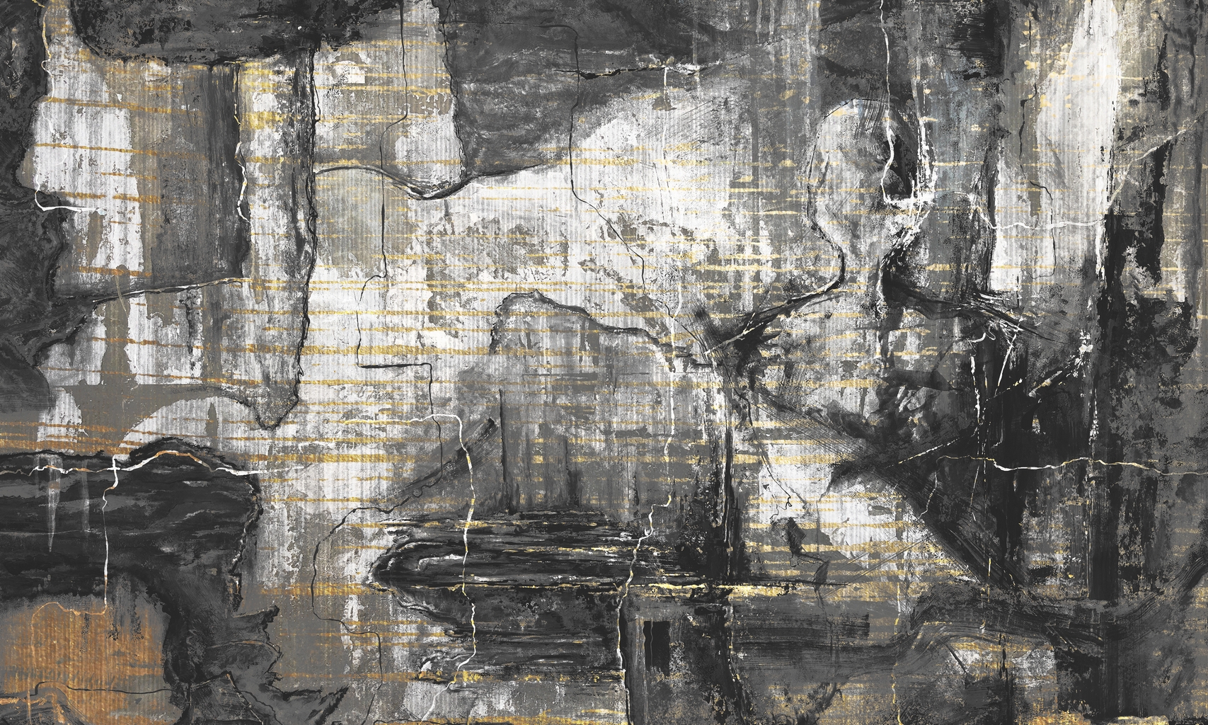 Kontrastowa interpretacja z akcentami złota i czerni. Dynamiczna, ekspresyjna powierzchnia o mocnym artystycznym charakterze.