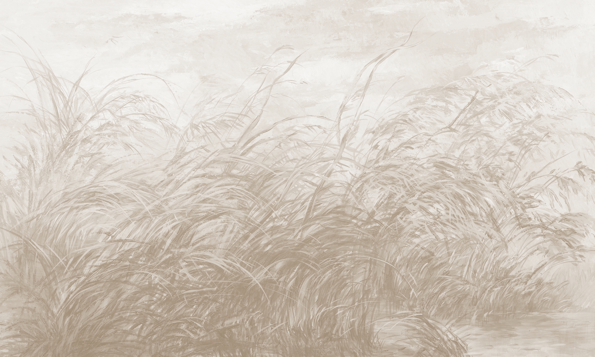 Miękka, monochromatyczna interpretacja natury o poranku. Doskonała do przestrzeni wymagających lekkości, światła i harmonii.