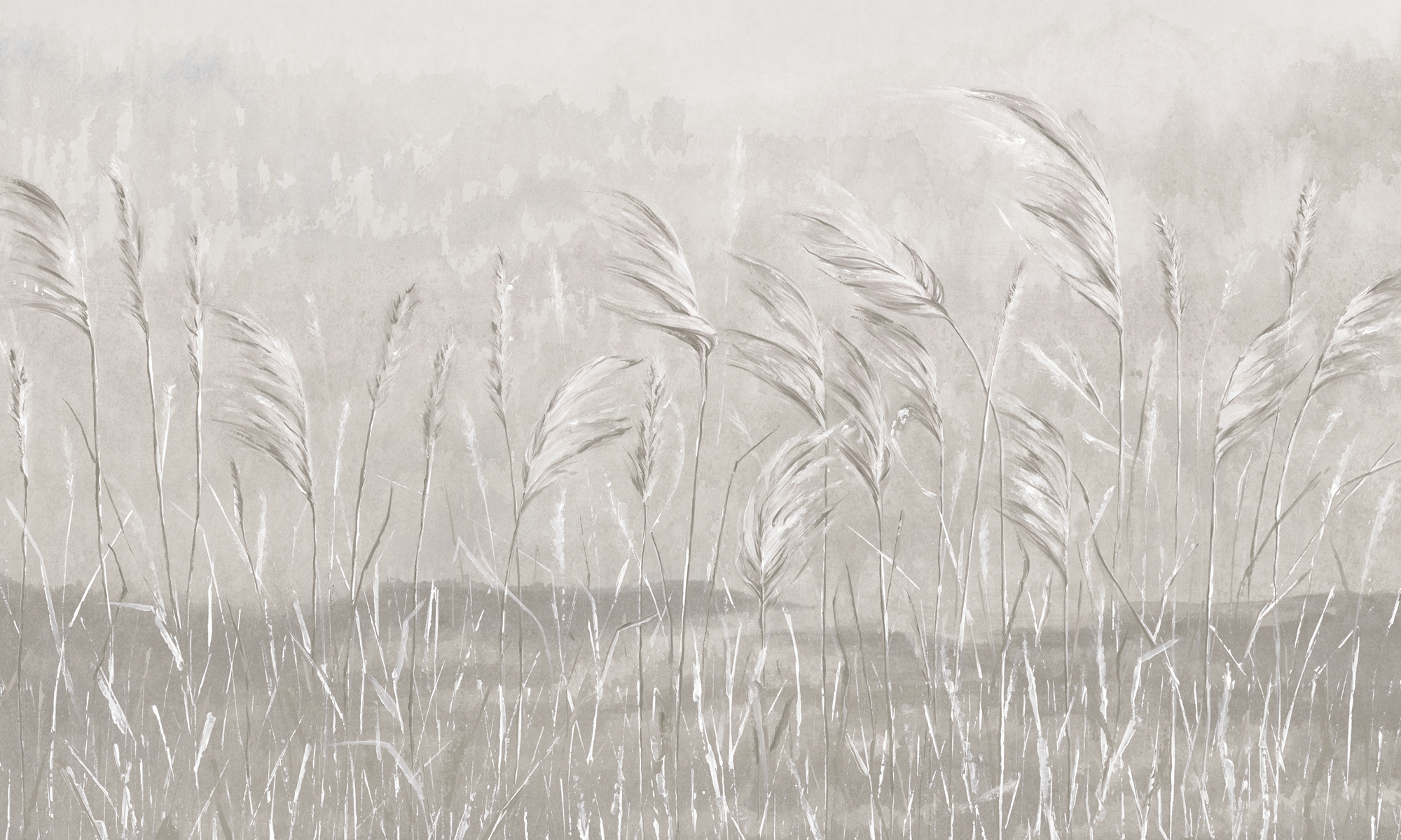 Tapeta z delikatnym motywem traw poruszanych wiatrem. Utrzymana w jasnych, piaskowych tonach wprowadza do wnętrza spokój i naturalną lekkość.