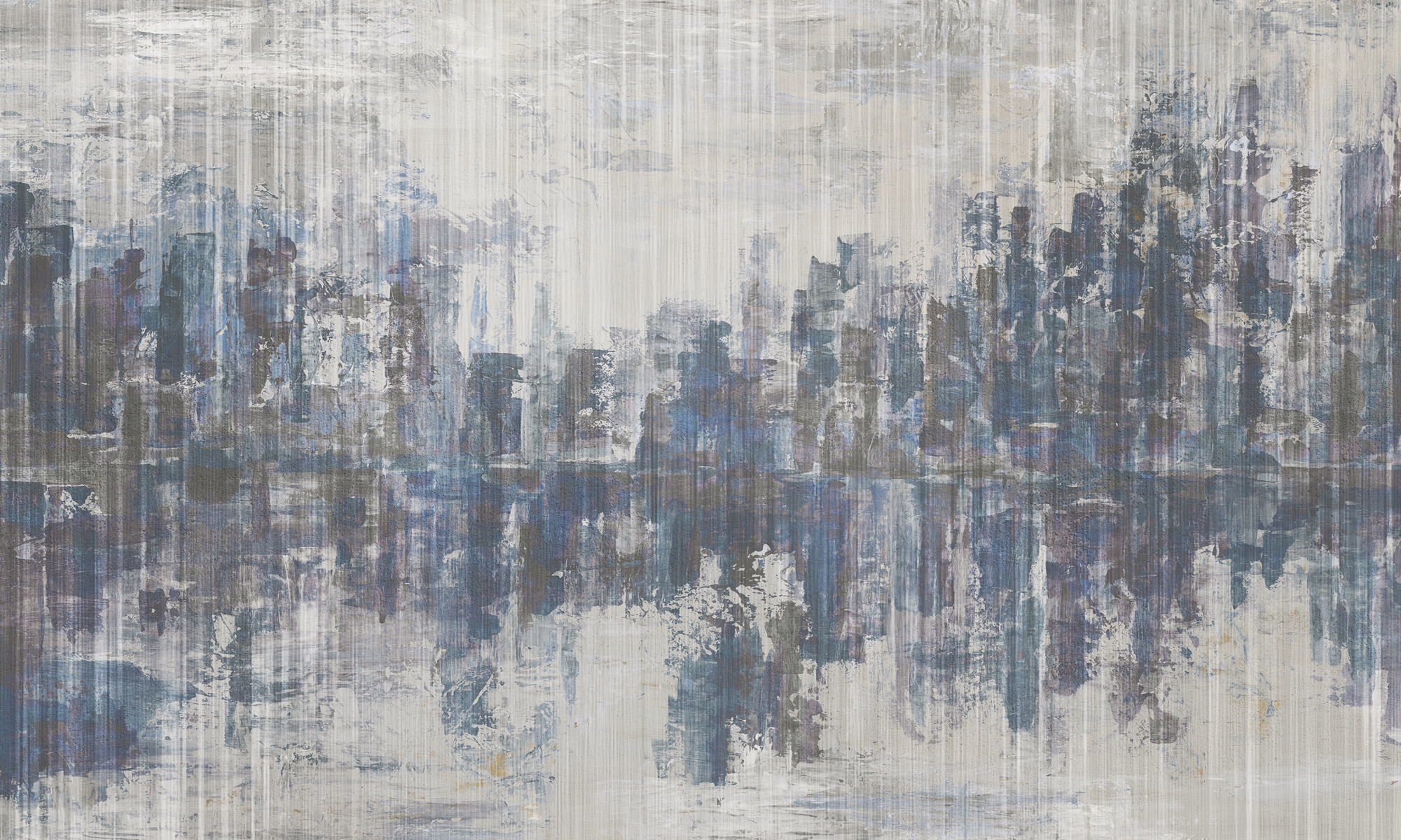 Połączenie chłodnych błękitów i szarości tworzy efekt miejskiej głębi. Dekor idealny do nowoczesnych i loftowych przestrzeni.