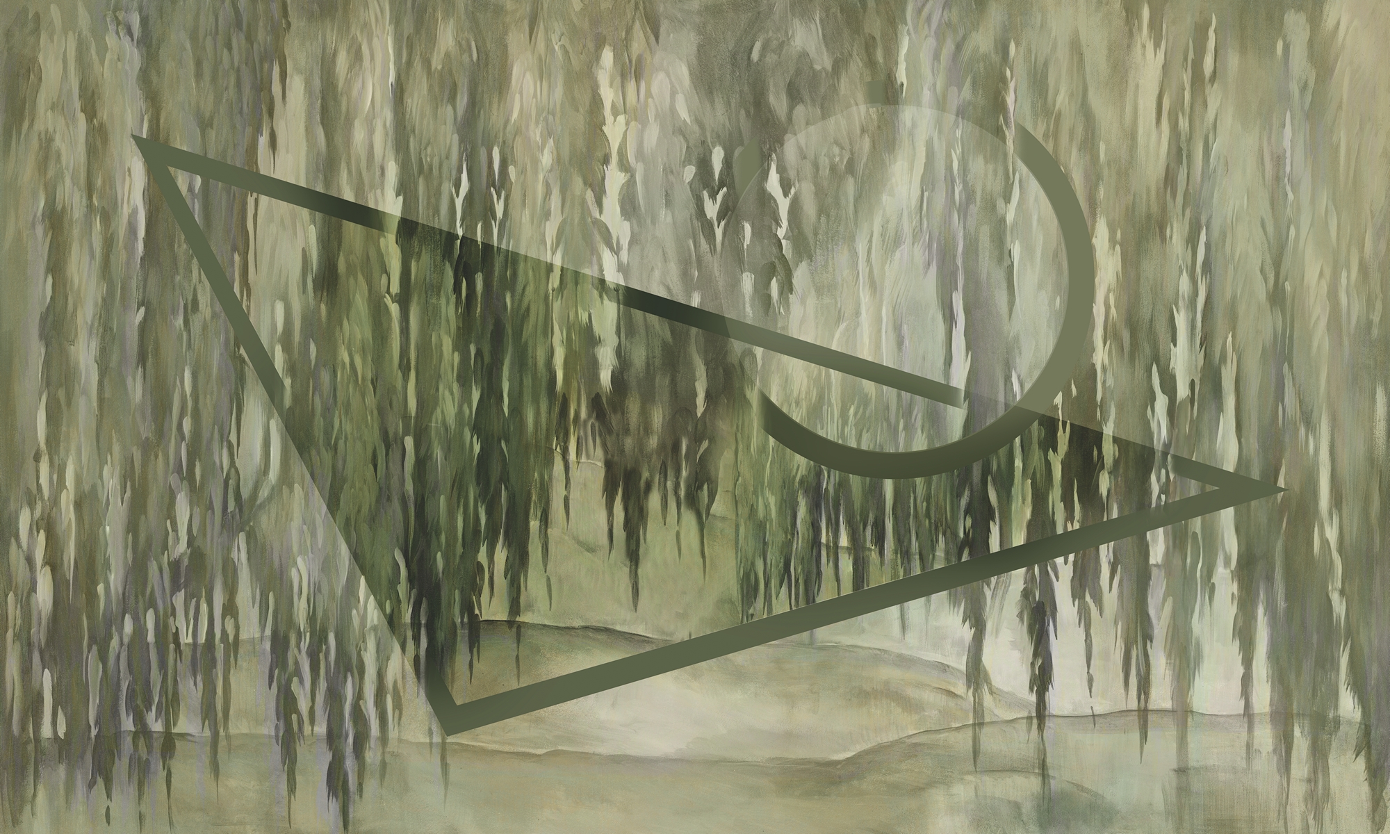 Tapeta ścienna w zielonych tonach z geometrycznym motywem w ciemnej zieleni. Harmonijne połączenie natury i współczesnego designu nadaje wnętrzu głębi i spokoju.